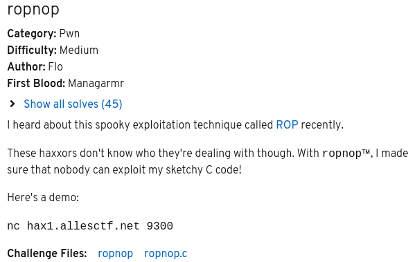 To find remaining gadgets we break after the call to ropnop() and search for remaining returns in the binary.
